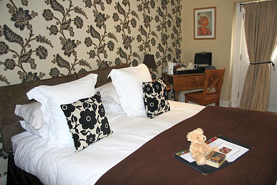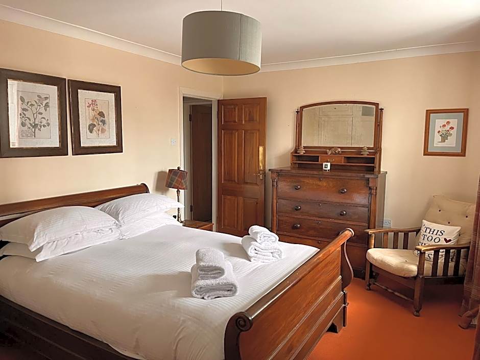 This room features a large antique four-poster bed, a working fire place and a view. There is also an private bathroom.