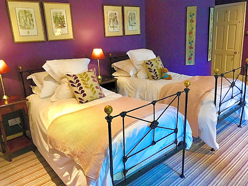 This room features a large antique four-poster bed, a working fire place and a view. There is also an private bathroom.